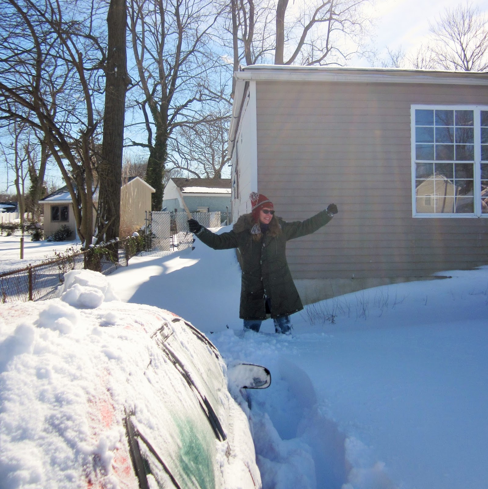 Since we have a right of way driveway, rather than get buried 200 feet away from the street, we park in a spare driveway across the street. On Sunday, we managed to dig a path to our first car in just thirty minutes!