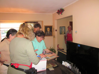 The dining room table had the famous cranberry set upon it. Monica had this same set in her house as a kid. Over the years, we have bought two of these, one for us and one for Monica's sister. We did not need another today.